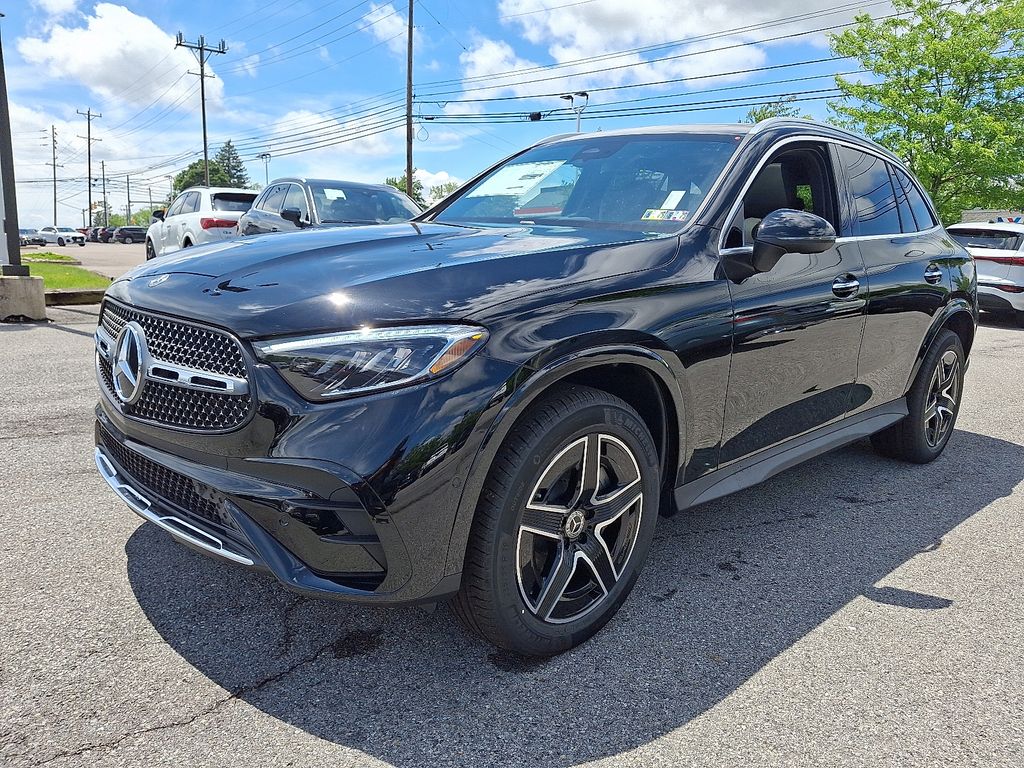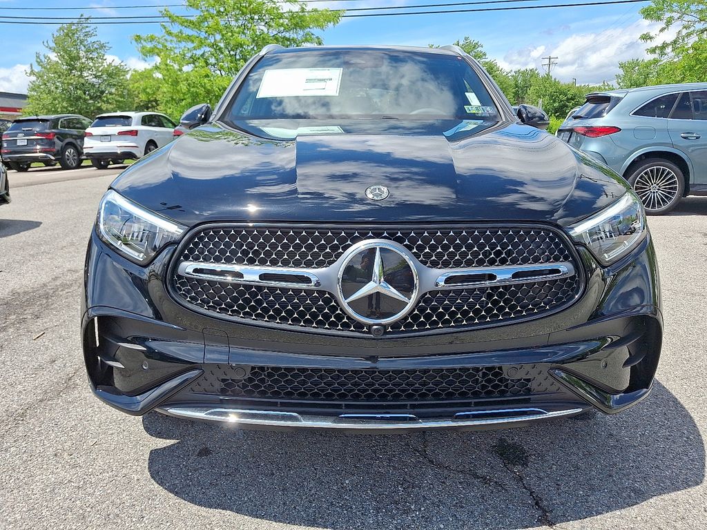 2025 Mercedes-Benz GLC 300 4MATIC® 11.9" Center Touchscreen Display, 16-Way Power Front Seats w/Memory/Lumbar/Thigh Ext, 18" 10-Spoke Wheels, 3 USB C-Ports, 4-Wheel Disc Brakes, 8 Speakers, ABS brakes, Air Conditioning, Alloy wheels, AM/FM radio: SiriusXM, Apple CarPlay®/Android Auto®, Auto High-beam Headlights, Auto tilt-away steering wheel, Auto-dimming Rear-View mirror, Automatic temperature control, Brake assist, Bumpers: body-color, Child-Seat-Sensing Airbag, Compass, Delay-off headlights, Driver door bin, Driver vanity mirror, Dual front impact airbags, Dual front side impact airbags, Electronic Stability Control, Emergency communication system: eCall Emergency System, Exterior Parking Camera Rear, Four wheel independent suspension, Front anti-roll bar, Front Bucket Seats, Front Center Armrest, Front dual zone A/C, Front reading lights, Fully automatic headlights, Garage door transmitter: HomeLink, Genuine wood dashboard insert, HD Radio, Head restraints memory, Heated door mirrors, Heated Front Bucket Seats, Heated front seats, Illuminated entry, Inductive Wireless Charging, Knee airbag, Leather steering wheel, Low tire pressure warning, MB-Tex Upholstery, Memory seat, Occupant sensing airbag, Outside temperature display, Overhead airbag, Overhead console, Panic alarm, Passenger door bin, Passenger vanity mirror, Power adjustable front head restraints, Power door mirrors, Power driver seat, Power Liftgate, Power passenger seat, Power steering, Power windows, Premium audio system: MBUX, Radio data system, Radio: 3rd Generation MBUX, Rain sensing wipers, Rear anti-roll bar, Rear fog lights, Rear reading lights, Rear seat center armrest, Rear window defroster, Rear window wiper, Remote keyless entry, Security system, SiriusXM Satellite Radio, Speed control, Speed-sensing steering, Split folding rear seat, Spoiler, Steering wheel memory, Steering wheel mounted audio controls, Tachometer, Telescoping steering wheel, Tilt steering wheel, Traction control, Trip computer, Turn signal indicator mirrors, Variably intermittent wipers, Wireless Android Auto®, Wireless Apple CarPlay®. GLC 300 4MATIC®