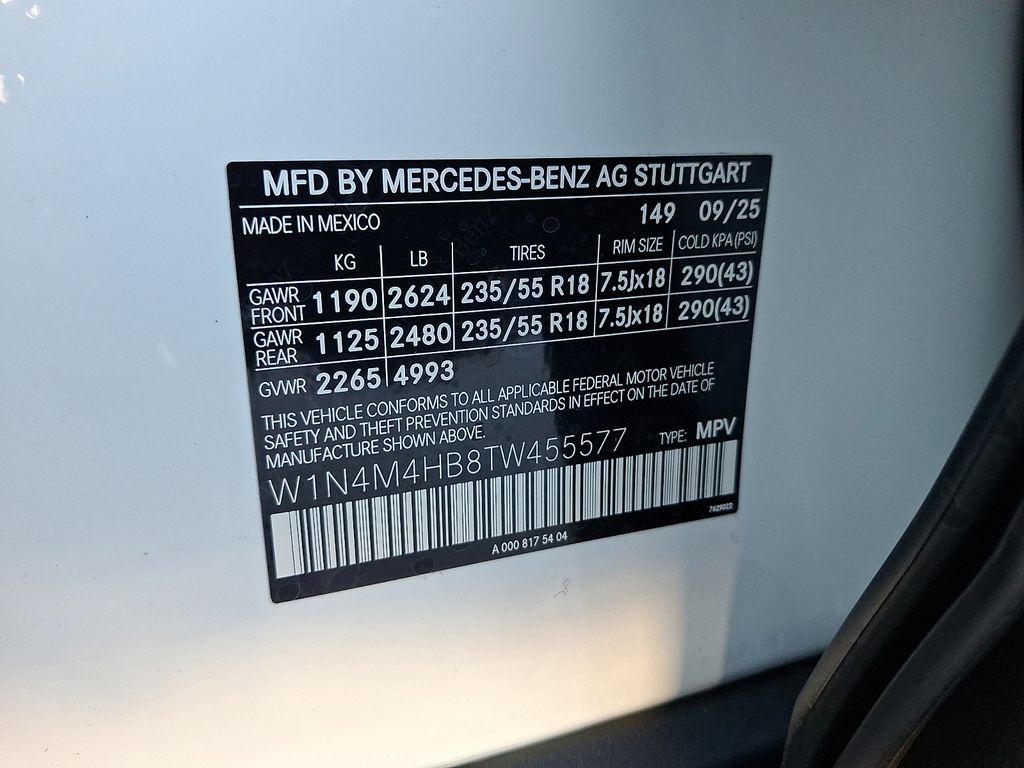 2026 Mercedes-Benz GLB 250 4MATIC® 4-Wheel Disc Brakes, 8 Speakers, ABS brakes, Air Conditioning, Alloy wheels, AM/FM radio: SiriusXM, Apple CarPlay®/Android Auto®, Auto High-beam Headlights, Auto-dimming door mirrors, Automatic temperature control, Brake assist, Bumpers: body-color, Child-Seat-Sensing Airbag, Delay-off headlights, Driver door bin, Driver vanity mirror, Dual front impact airbags, Dual front side impact airbags, Electronic Stability Control, Emergency communication system: Mercedes-Benz Emergency Call Service, Exterior Parking Camera Rear, Four wheel independent suspension, Front anti-roll bar, Front Bucket Seats, Front Center Armrest, Front Comfort Seats, Front dual zone A/C, Front fog lights, Front reading lights, Fully automatic headlights, Heated door mirrors, Illuminated entry, Knee airbag, Leather steering wheel, Low tire pressure warning, MB-Tex Upholstery, Memory seat, Occupant sensing airbag, Outside temperature display, Overhead airbag, Overhead console, Panic alarm, Passenger door bin, Passenger vanity mirror, Power door mirrors, Power driver seat, Power Liftgate, Power passenger seat, Power steering, Power windows, Premium audio system: MBUX, Radio data system, Radio: Mercedes-Benz User Experience (MBUX), Rain sensing wipers, Rear anti-roll bar, Rear fog lights, Rear reading lights, Rear window defroster, Rear window wiper, Remote keyless entry, Security system, SiriusXM Trial Subscription, Speed control, Speed-sensing steering, Split folding rear seat, Spoiler, Steering wheel mounted audio controls, Tachometer, Telescoping steering wheel, Tilt steering wheel, Traction control, Trip computer, Turn signal indicator mirrors, Variably intermittent wipers, Wheels: 18" Twin 5-Spoke. GLB 250 4MATIC®