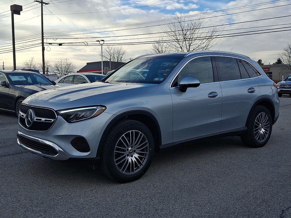 2026 Mercedes-Benz GLC 300 4MATIC® 11.9" Center Touchscreen Display, 16-Way Power Front Seats, 18" 5-Twin Spoke Wheels, 3 USB C-Ports, 4-Wheel Disc Brakes, 8 Speakers, ABS brakes, Air Conditioning, Alloy wheels, AM/FM radio: SiriusXM, Apple CarPlay®/Android Auto®, Auto High-beam Headlights, Auto tilt-away steering wheel, Auto-dimming Rear-View mirror, Automatic temperature control, Brake assist, Bumpers: body-color, Child-Seat-Sensing Airbag, Compass, Delay-off headlights, Driver door bin, Driver vanity mirror, Dual front impact airbags, Dual front side impact airbags, Electronic Stability Control, Emergency communication system: eCall Emergency System, Exterior Parking Camera Rear, Four wheel independent suspension, Front anti-roll bar, Front Bucket Seats, Front Center Armrest, Front dual zone A/C, Front reading lights, Fully automatic headlights, Garage door transmitter: HomeLink, Genuine wood dashboard insert, HD Radio, Head restraints memory, Heated door mirrors, Heated Front Bucket Seats, Heated front seats, Illuminated entry, Inductive Wireless Charging, Knee airbag, Leather steering wheel, Low tire pressure warning, MB-Tex Upholstery, Memory seat, Occupant sensing airbag, Outside temperature display, Overhead airbag, Overhead console, Panic alarm, Passenger door bin, Passenger vanity mirror, Power adjustable front head restraints, Power door mirrors, Power driver seat, Power Liftgate, Power passenger seat, Power steering, Power windows, Premium audio system: MBUX, Radio data system, Radio: 3rd Generation MBUX, Rain sensing wipers, Rear anti-roll bar, Rear fog lights, Rear reading lights, Rear seat center armrest, Rear window defroster, Rear window wiper, Remote keyless entry, Security system, SiriusXM Satellite Radio, Speed control, Speed-sensing steering, Split folding rear seat, Spoiler, Steering wheel memory, Steering wheel mounted audio controls, Tachometer, Telescoping steering wheel, Tilt steering wheel, Traction control, Trip computer, Turn signal indicator mirrors, Variably intermittent wipers, Wireless Android Auto®, Wireless Apple CarPlay®. GLC 300 4MATIC®